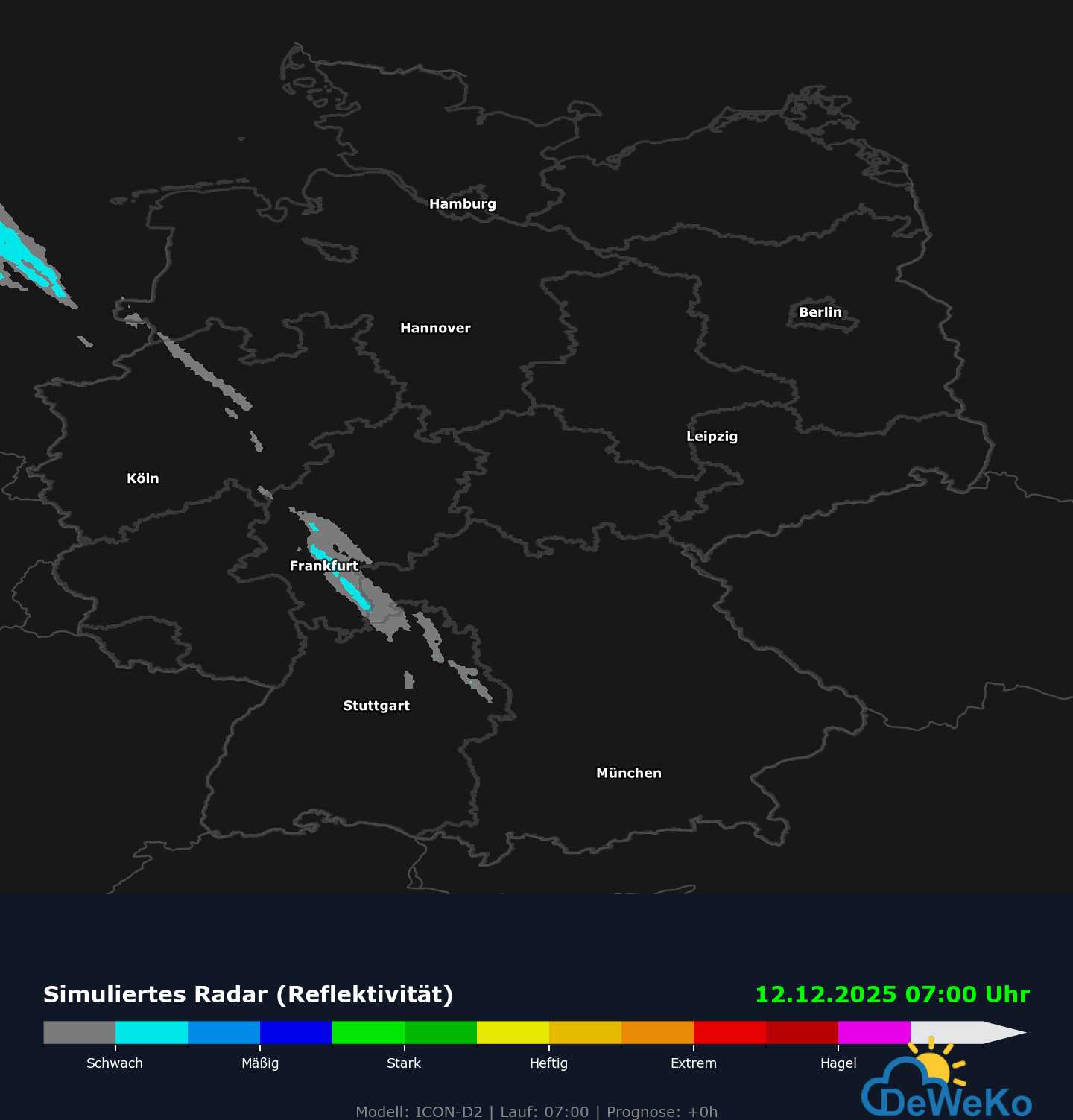 Vorhersagegebiet: Deutschland, Alpenraum und angrenzende Nachbarländer.Aktualisierung: Alle 3 Stunden (neuer Lauf um 00, 03, 06 Uhr usw.) Vorhersagezeitraum: Es schaut bis zu 48 Stunden in die Zukunft (perfekt für den aktuellen und nächsten Tag).